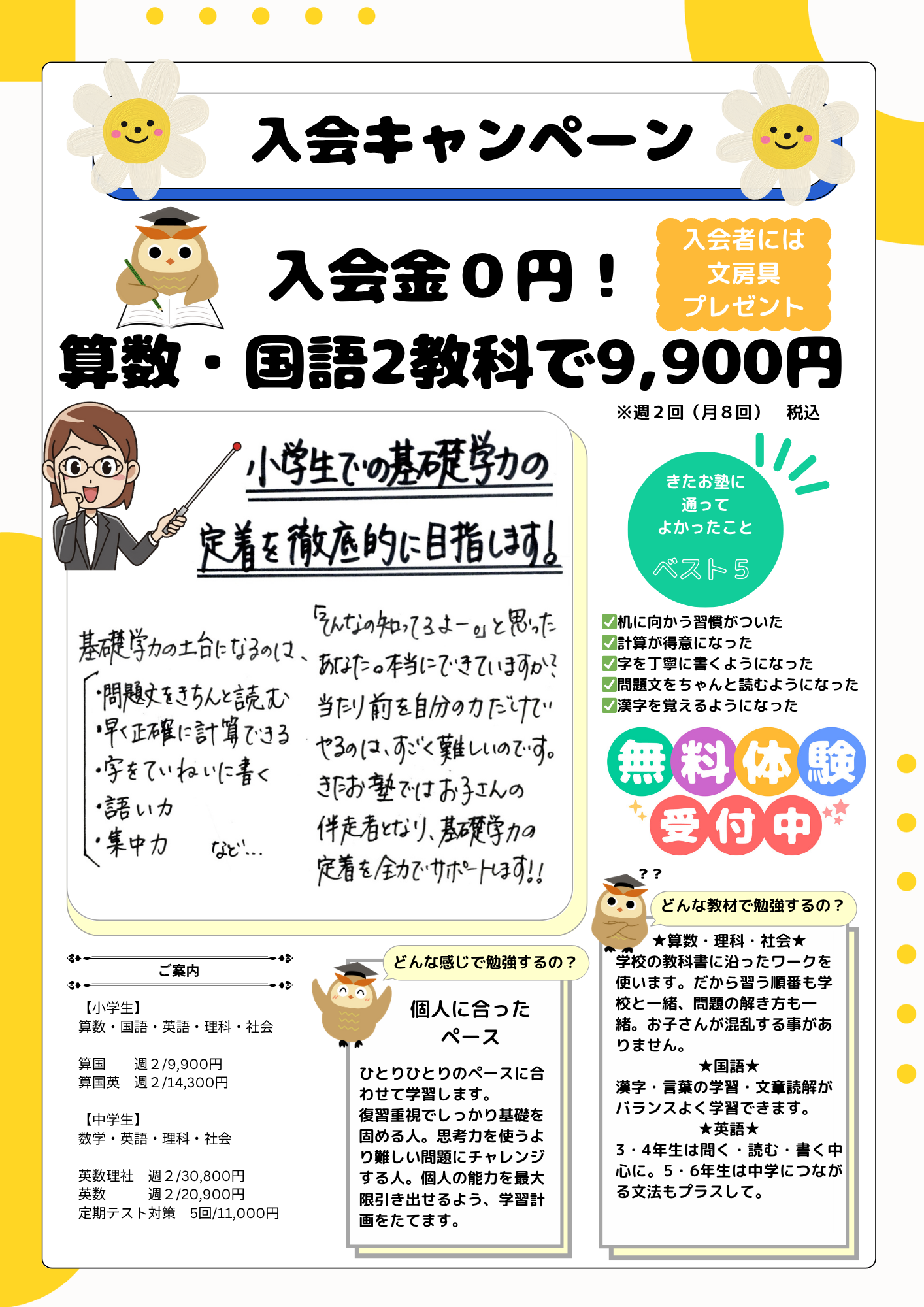 「無料体験参加希望」「お子様のお名前(漢字とふりがな)」をお送りください。